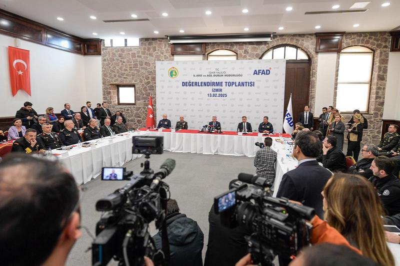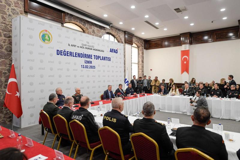İzmir Valisi Dr. Süleyman Elban ev sahipliğinde “Ege Denizi Santorini Adası ve Civarındaki Sismik Aktiviteye Yönelik Olası Risk Değerlendirmesi Bölgesel Koordinasyon Toplantısı” yapıldı. İzmir İktisat Kongresi Binası’nda yapılan toplantıya, İzmir Büyükşehir Belediye Başkanı Dr. Cemil Tugay da katıldı. Sonrasında basın mensuplarının sorularını yanıtlayan Başkan Dr. Cemil Tugay, “Biz süreci, paylaşılan her türlü bilgiyi zaten takip ediyoruz. Doğrudan depreme neden olacak bir durum görünmüyor. Hâlihazırda devam eden 5 - 5,5 şiddeti arasındaki depremlerin en büyüğü 5,2 olmuş. Bize etkisi minimum düzeyde. Bir risk her zaman var ama şu anda görünen önemli bir risk yok deniliyor” ifadelerini kullandı.
