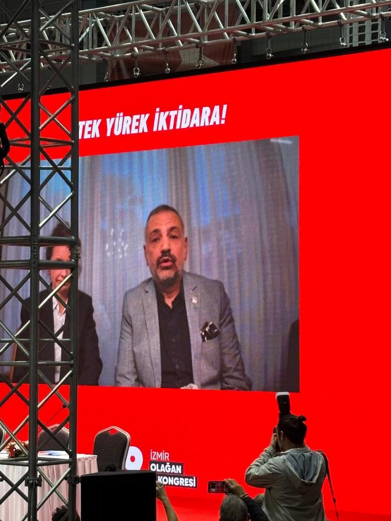 Kongreye ev hapsinde bulunan CHP İzmir İl Başkanı Şenol Aslanoğlu canlı bağlantıyla katıldı.