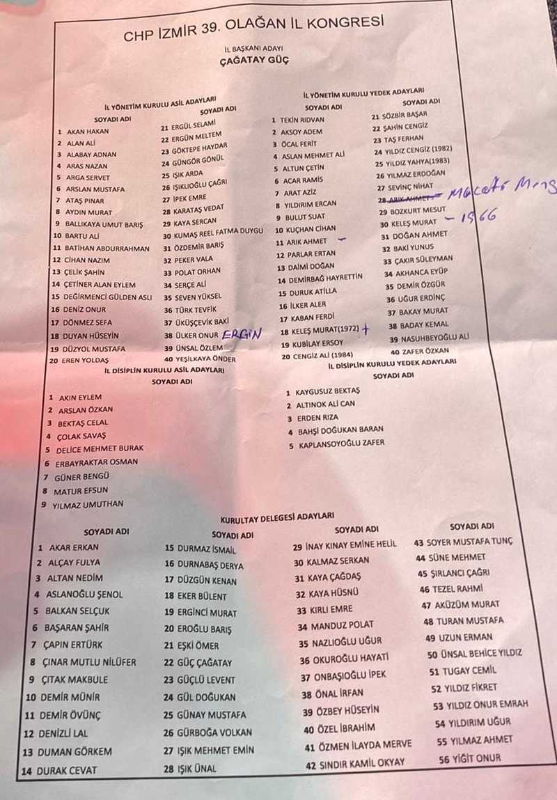 CHP İzmir İl Başkan Adayı Çağatay Güç'ün listesi belli oldu: