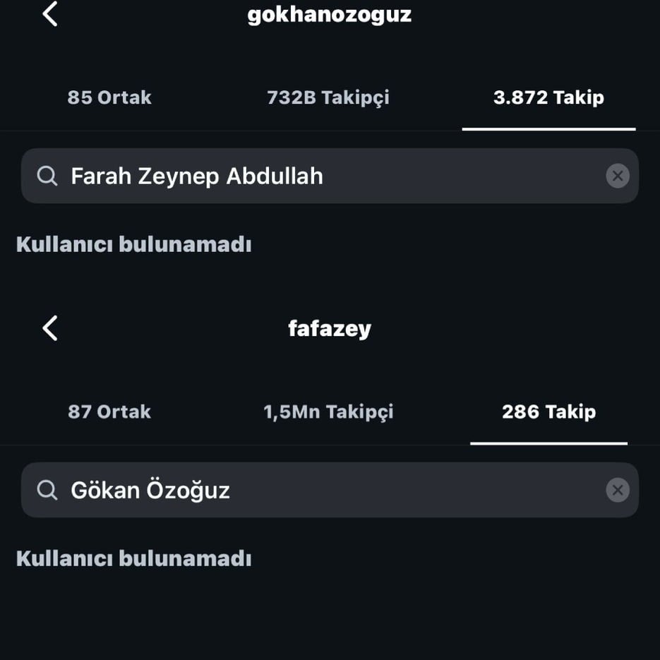 Gökhan Özoğuz ile Farah Zeynep Abdullah takipleşmeyi bıraktı