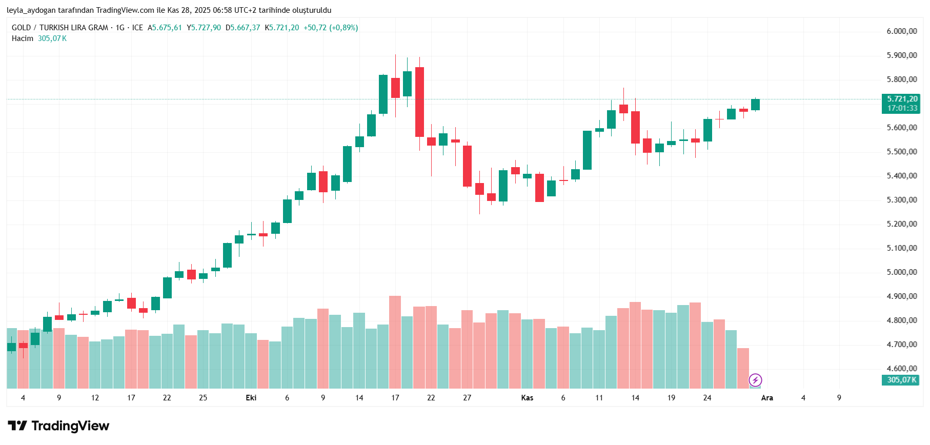 GRAM ALTIN 5 BİN 720 LİRADA