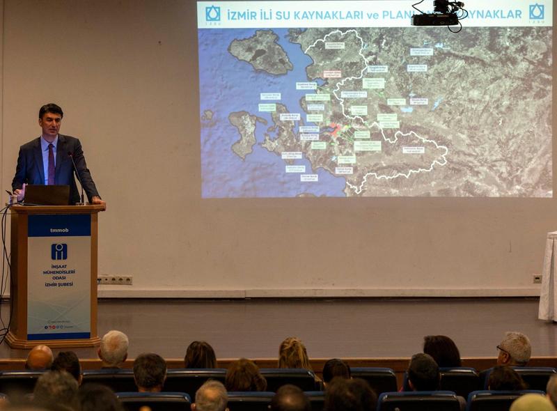 TMMOB (Türk Mühendis ve Mimar Odaları Birliği) İnşaat Mühendisleri Odası İzmir Şubesi’nin düzenlediği “İzmir’in Su Sorunları Paneli”, Tepekule Kongre Merkezi’nde yapıldı. Panele İZSU Genel Müdürü Gürkan Erdoğan, İnşaat Mühendisleri Odası (İMO) İzmir Şubesi Başkanı Bengi Atak, İMO İzmir Şubesi yönetim kurulu üyeleri, İZSU bürokratları, akademisyenler ve uzmanlar katıldı. Panelin ikinci ve üçüncü oturumunda ise kentin içme suyu sistemi, iklim krizi, tarihi su yapıları ve sürdürülebilir su yönetimi üzerine kapsamlı değerlendirmelerde bulunuldu.