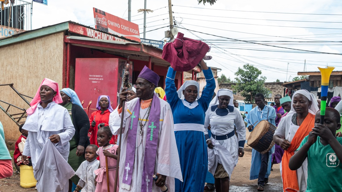 Ritüel yalnızca kilise içinde değil, Kibera'nın dar sokaklarında da sürdürülüyor. Bebeği taşıyan cemaat üyesine diğer kilise mensupları dans ederek ve ilahiler söyleyerek eşlik ediyor. Böylece bebek, hem dini topluluğa hem de mahalle halkına tanıtılmış oluyor.