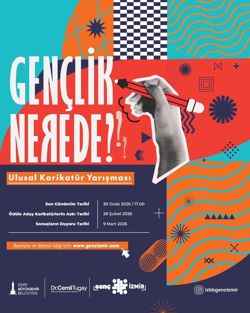 İzmir Büyükşehir Belediyesi, gençlerin sesini sanatın gücüyle duyurmak amacıyla “Gençlik Nerede?” temalı Ulusal Karikatür Yarışması düzenliyor. Gençliğin bugünü ve yarınına dair umutlarına ışık tutacak yarışmada dereceye girenlere toplamda 130 bin TL ödül dağıtılacak.