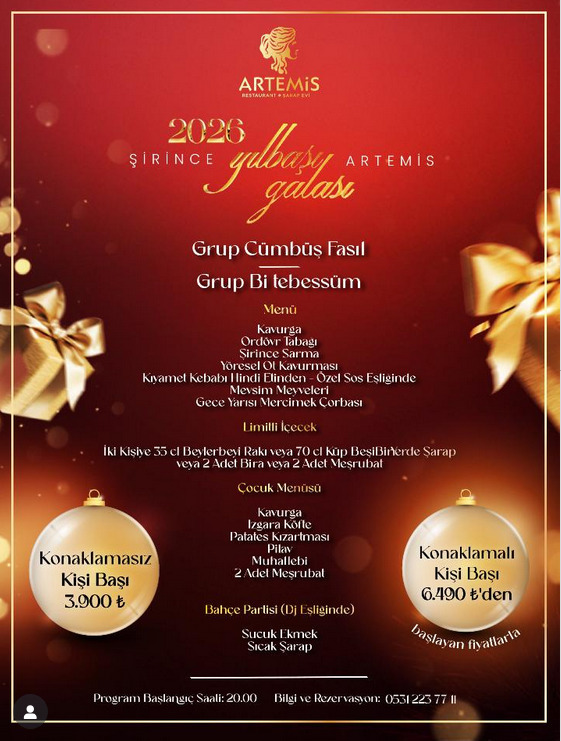 Yılbaşı Galasında Artemis Restaurant & Şarap Evi’nde Grup Cümbüş Fasıl ve Grup Bi Tebessüm sahne alacak.