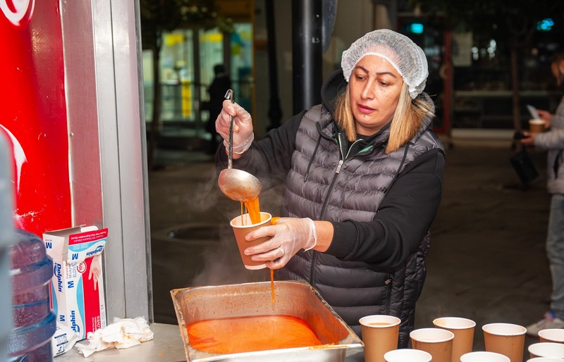 Karşıyaka Belediyesi, kış döneminde hafta içi her sabah işe veya okula gitmek için erken saatlerde yola çıkan vatandaşlar için sıcak çorba ikramına devam ediyor. Belediye Sosyal Hizmetler Müdürlüğü tarafından yürütülen uygulama kapsamında; ilçenin yoğun noktalarında, hafta içi her gün 07.30-08.30 saatleri arasında yüzlerce kişiye çorba dağıtılıyor.