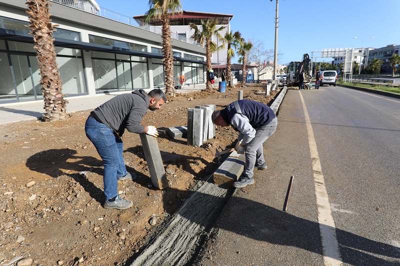 Menderes Belediyesi, Kasımpaşa Mahallesi’nde kaldırım çalışması gerçekleştiriyor.