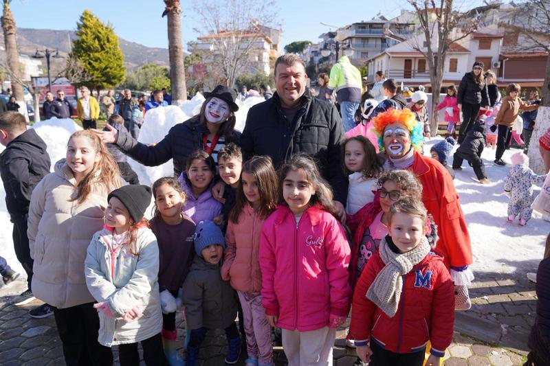 Ürkmez’e getirilen kar sürpriziyle büyük sevinç yaşayan minikler, oyunlar ve eğlenceli etkinliklerle tatilin keyfini çıkardı.