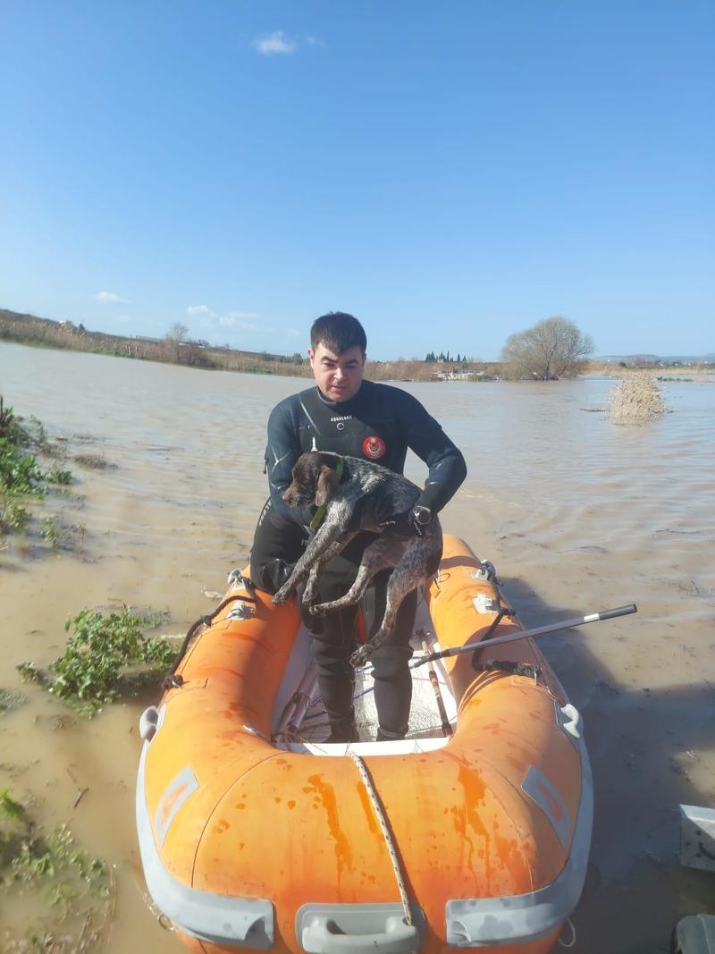 İzmir Büyükşehir Belediyesi İtfaiye Dairesi Başkanlığı ekipleri, Torbalı’nın Göllüce Mahallesi’nde sağanak yağış nedeniyle su basan bir ahırda mahsur kalan koyun ve tavukları kurtarmak için seferber oldu. Ekipler, dikkatli ve özverili bir şekilde hayvanları tahliye ederken, hayvanların yem ve su ihtiyaçlarını da karşıladı. Bir itfaiye erinin koyunları elleriyle beslemesi, bu zorlu koşullarda bile insan ve hayvan arasında güçlü bir bağın varlığını gösterdi. Aynı zamanda, bölgedeki suyun tahliyesi için su çekme çalışmaları da aralıksız sürdürüldü.