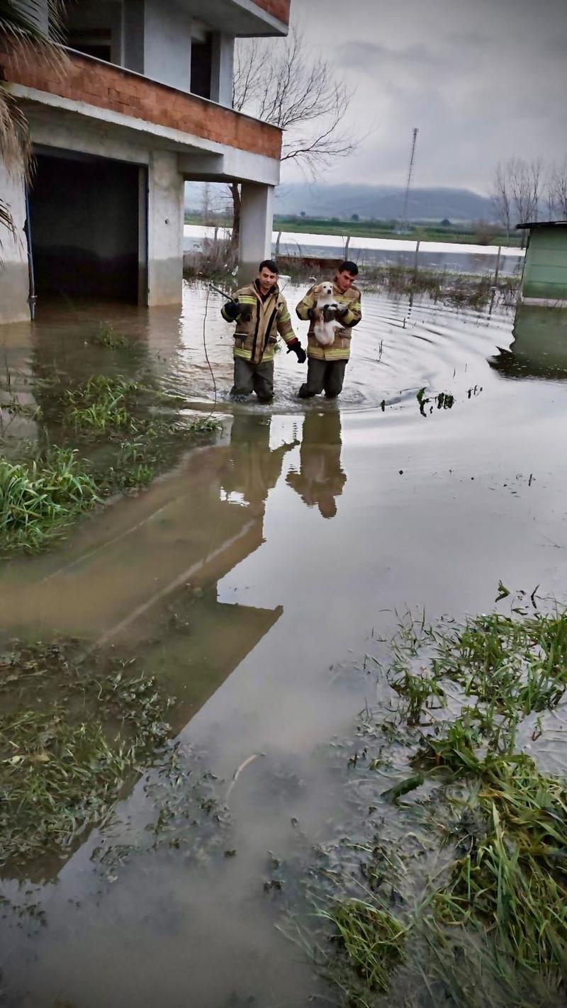 İzmir’in Torbalı ilçesinde inşaat halindeki üç katlı bir binada mahsur kalan köpek, su seviyesinin hızla yükselmesi nedeniyle üst katlara sığındı. Durumu fark eden vatandaşların ihbarıyla, İzmir Büyükşehir Belediyesi İtfaiye Dairesi Başkanlığı ekipleri hızlı bir şekilde bölgeye ulaştı. Bir hayli korktuğu görülen köpek İtfaiyecilerin kucağında güvenli bir şekilde binadan çıkarıldı. İzmir İtfaiyesi, son bir yılda 4 bin 824 hayvanı kurtardı.