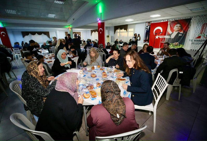 Ramazan ayı boyunca kentin farklı noktalarında binlerce vatandaşı aynı sofrada buluşturmayı amaçlayan Karşıyaka Belediyesi, yılın ilk iftar programını Cumhuriyet Mahallesi Düğün Salonu’nda gerçekleştirdi. Belediye Başkanı Yıldız Ünsal’ın ev sahipliğindeki iftar yemeğine; Cumhuriyet Mahallesi Muhtarı Özay Dağhan, Latife Hanım Mahallesi Muhtarı Levent Bozkurt, Belediye meclis üyeleri ve vatandaşlar katıldı. Hoca Yusuf Işık’ın yaptırdığı duanın ardından okunan ezanla birlikte oruçlarını açan vatandaşlar, dayanışmanın ve paylaşmanın mutluluğunu yaşadı. İftar sonrasında ise kurulan perdede sahnelenen geleneksel gölge oyunu, programa ayrı bir renk kattı. Hakan Fidan’ın ustalıkla hayat verdiği Hacivat ve Karagöz karakterleri hem çocuklara neşeli anlar yaşattı hem de büyüklere o özlenen eski Ramazanların tadını anımsattı.