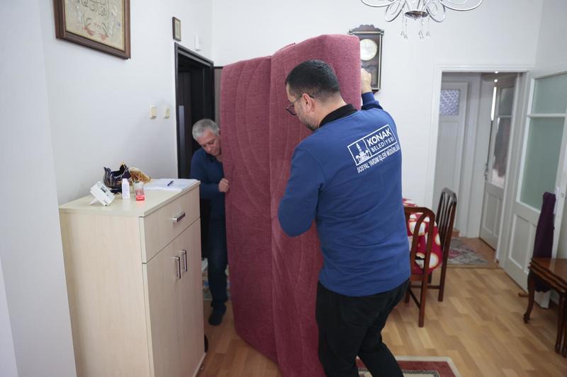 Vatandaşların kullanmadıkları 2. el ev eşyalarını evlerinden alarak ihtiyaç sahibi ailelere ulaştıran Konak Belediyesi, hem yüzleri güldürüyor hem de toplumsal dayanışmayı güçlendiriyor. Bugüne kadar 457 haneye ikinci el eşya yardımı yapılan ücretsiz hizmetten faydalanmak ya da bağış yapmak isteyenler 444 35 66 numaralı telefondan ayrıntılı bilgi alabiliyor.
