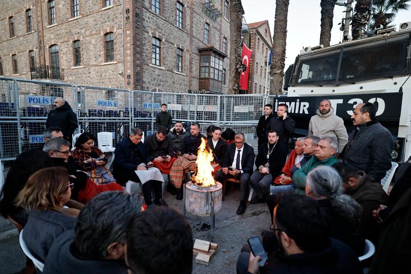 Bütün gece bina önünde olduklarını belirten Başkan Tugay, “İl başkanımız, bazı ilçe belediye başkanlarımız, meclis üyelerimiz ve partililerimiz burada. Kararlılığımızı göstermek için buradayız. Bu süreç hepimizi zorluyor ancak birilerinin buna karşı durması gerektiğine inanıyorum. Çünkü tümüyle yanlış ve haksız olan bu tutuma karşı net bir şekilde ‘hayır’ denilmesi gerekiyor. Biz yalnızca bu binanın korunması ve elde tutulması için değil, benzer durumların tekrar yaşanmaması için de çaba gösteriyoruz. Umuyorum ki bir sonuca ulaşırız. Ancak bu kararlı duruşun sürmesi gerekiyor. Daha fazla desteğe ihtiyaç duyduğumuz da bir gerçek. Buna rağmen, gerekirse tek başıma da devam edeceğim. Gücümüz yettiğince buradayız” dedi.