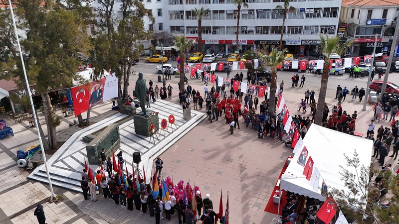 Şehit Hamdi Bey Meydanı’nda başlayan kutlama programına Edremit Kaymakamı Ahmet Odabaş, Edremit 19. Komando Tugayı ve Garnizon Komutanı Vekili Ulaştırma Albay Mehmet Kurt, Edremit Belediy...