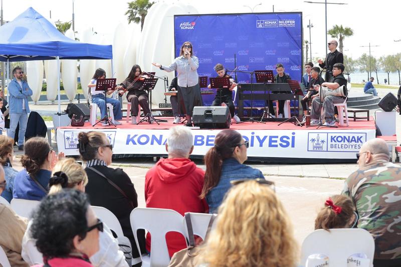 Konak Belediyesi Çocuk Korosu ise Şef Uğur Sayınbatur yönetiminde seslendirdikleri 23 Nisan ruhunu yaşatan marşlar, 23 Nisan şarkıları, Türkçe ve yabancı pop şarkılarla coşku dolu anlar yaşattı. Konserde misafir solist Doğa Filiz ve Yalın Yüksel’in caz düeti izleyenlerin alkışını alırken, koronun UNICEF’in dünya çocuklarına ithafen bestelenmiş şarkıyı başarıyla seslendirmesi, dinleyenleri duygulandırdı.