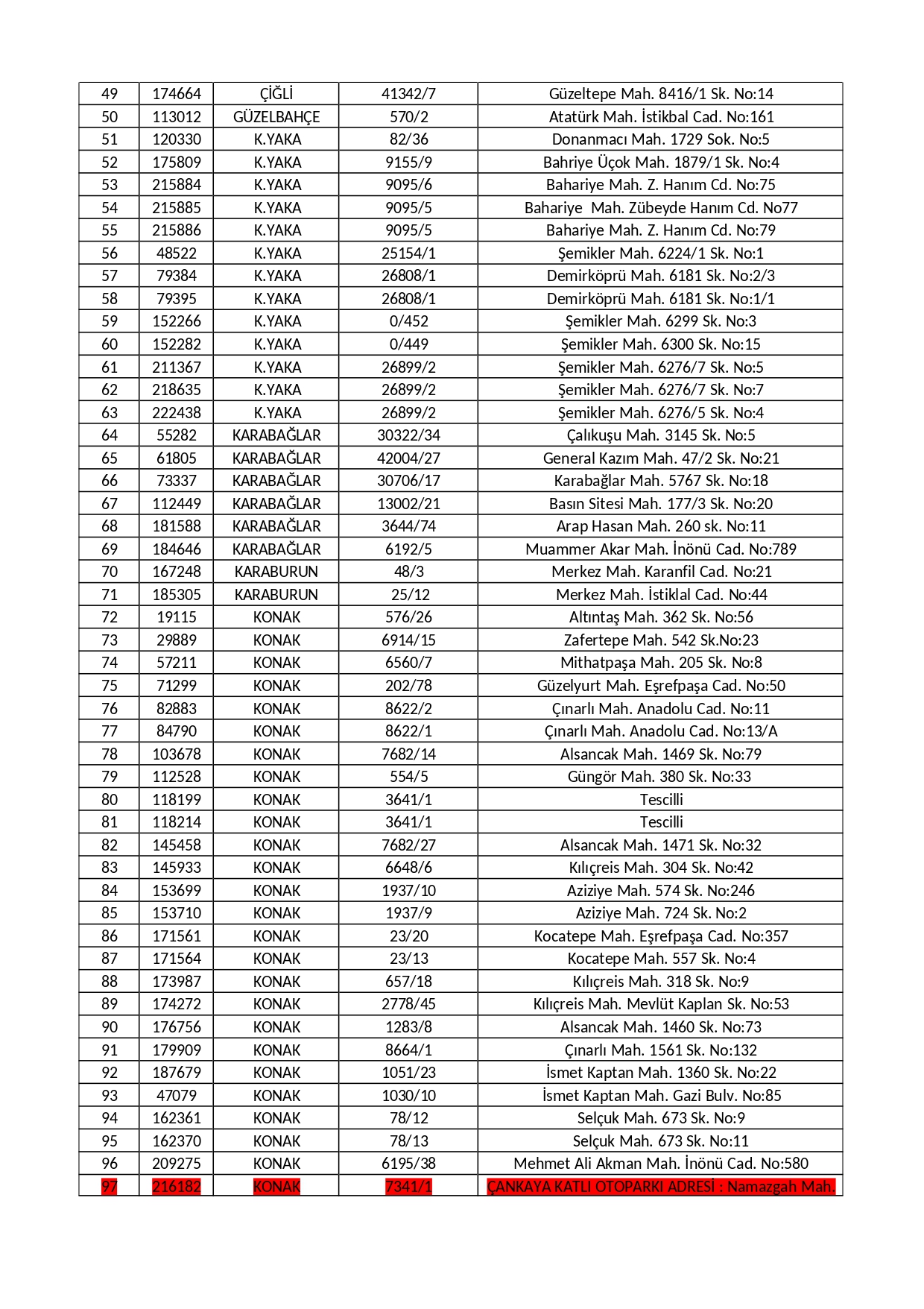 Çankaya Katlı Otopark ve Alışveriş Merkezi binasının yer aldığı taşınmazda belediyemizin hissesi yüzde 46,5 oranındadır. Geriye kalan yüzde 53,5 çoğunluk hissesi Vakıflar Genel Müdürlüğü ve Ziraat Bankası’na aittir. Söz konusu binada yaptırılan inceleme sonrası 07.01.2021 tarihinde tapu siciline “6306 Sayılı Kanun Gereğince Riskli Yapı" şerhi işlenmiş, Çevre, Şehircilik ve İklim Değişikliği İl Müdürlüğü’nün 26.05.2022 tarihli yazısı ile de söz konusu taşınmazdaki riskli yapı tespitinin kesinleştiği bildirilmiştir.